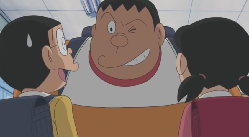 진구에게 달려가 큰일이라고 어떻게해야할지 모르겠다고 이야기하는 도라에몽